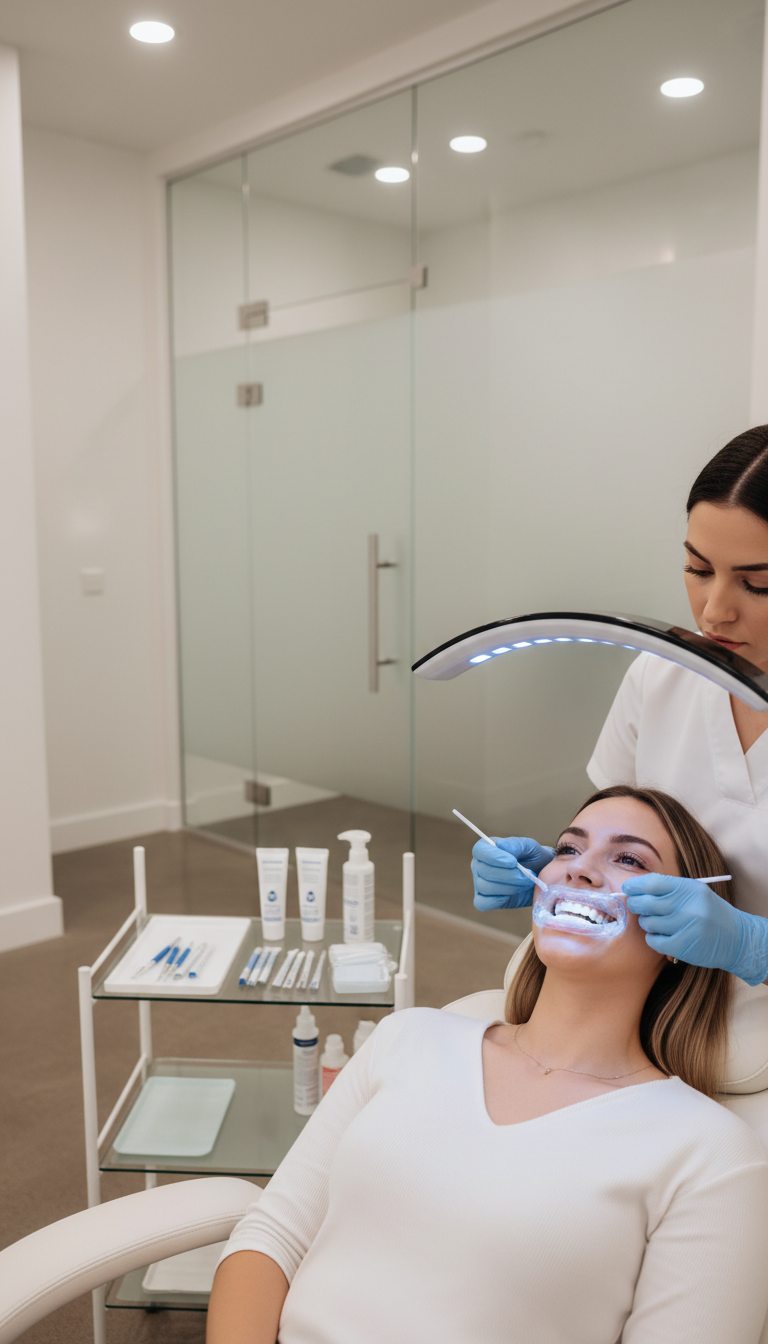 Im gepflegten Studio von Elegance Smile trifft moderne Technik auf eine beruhigende Wohlfühl-Atmosphäre. Zahnaufhellung wird hier mit hoher Präzision und sanfter Pflege durchgeführt – für sichtbar weißere Zähne in entspannter Umgebung.