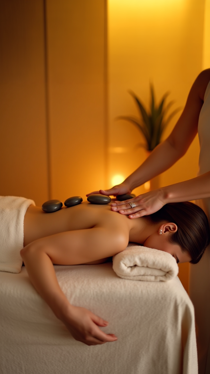 Eine Hot Stone Massage kombiniert warme Steine mit gezielten Massagegriffen zur Tiefenentspannung und Lockerung der Muskulatur.